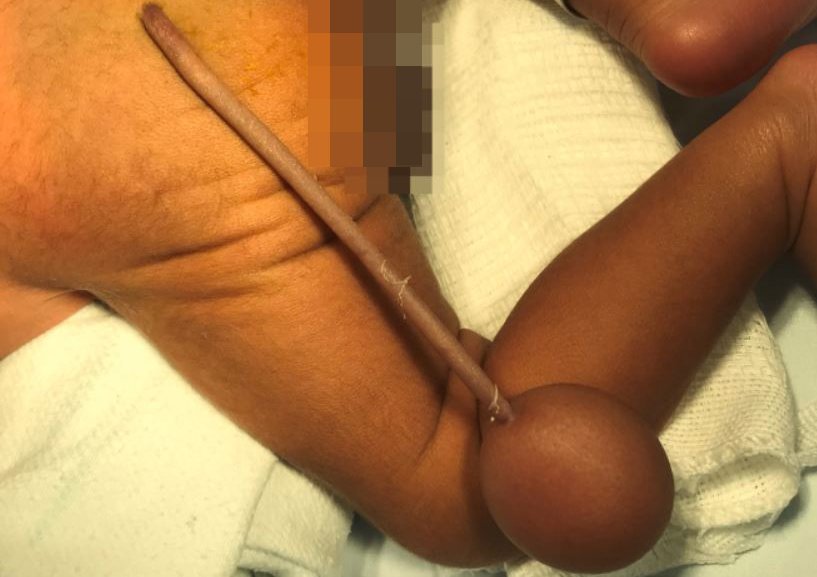 İsmi açıklanmayan küçük çocuğun erken doğumla hayata gözlerini açtığını açıklayan bilim insanları bebeğin 12 santimetrelik bir kuyruğu olduğunu fark etti.
